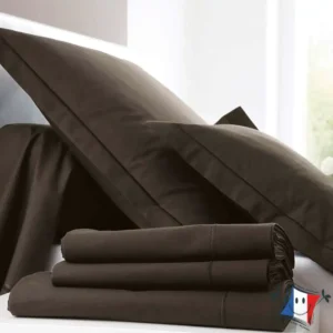 Drap housse uni coton percale 80 fils bonnets 30 cm 180×200 Lingorama