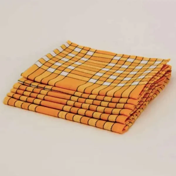 Son design unique, la serviette de table normande, est composée de carreaux blanc sur un fond jaune.