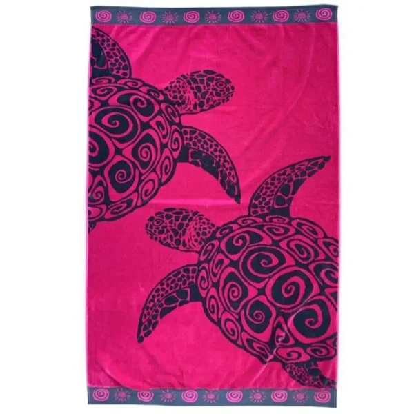 Orné d’un motif tortue élégant, ce drap de plage fuchsia sèche rapidement.