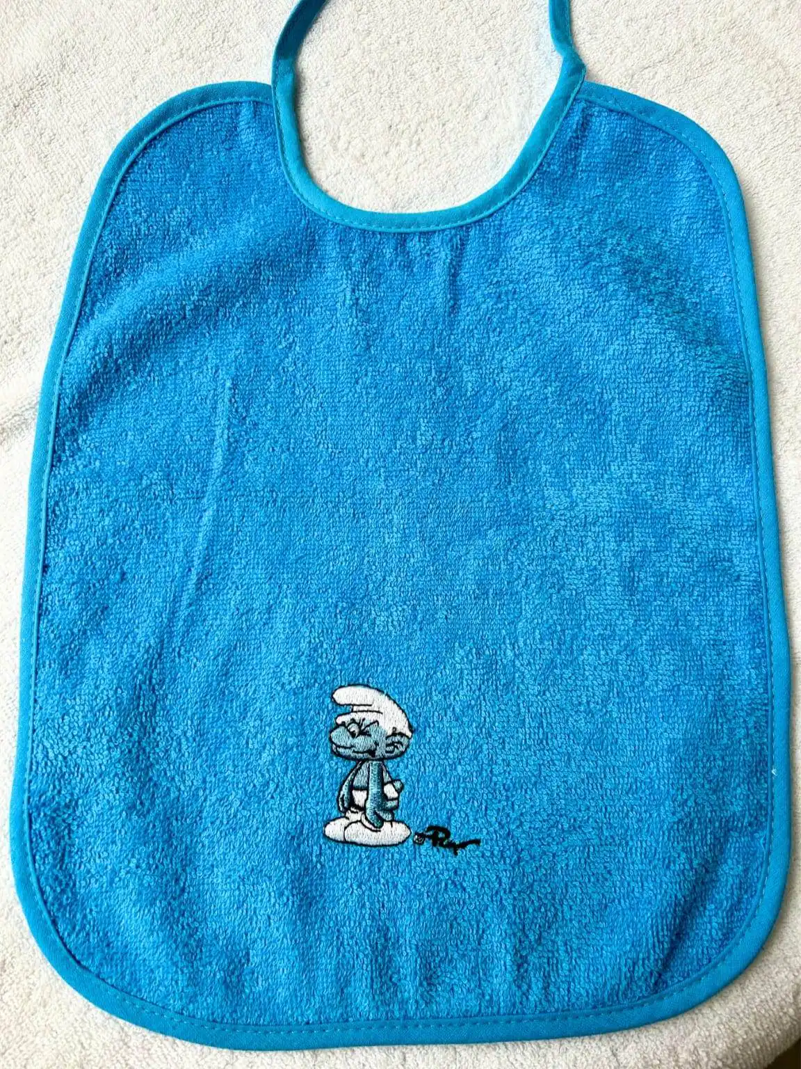 Ce bavoir Schtroumpf bleu 29×38 cm est l’accessoire idéal pour protéger les vêtements de votre bébé pendant les repas. Conçu en coton éponge douce et absorbante, il assure une excellente protection contre les éclaboussures et les taches.
