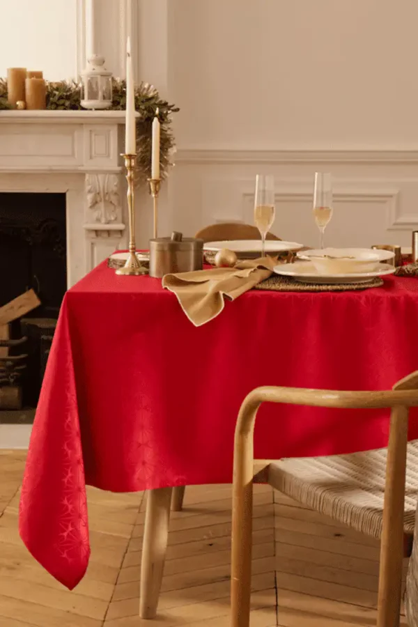 Cette Nappe rectangle 160×250 en polyester Damassé rouge est anti-taches, facile à entretenir et sans repassage.