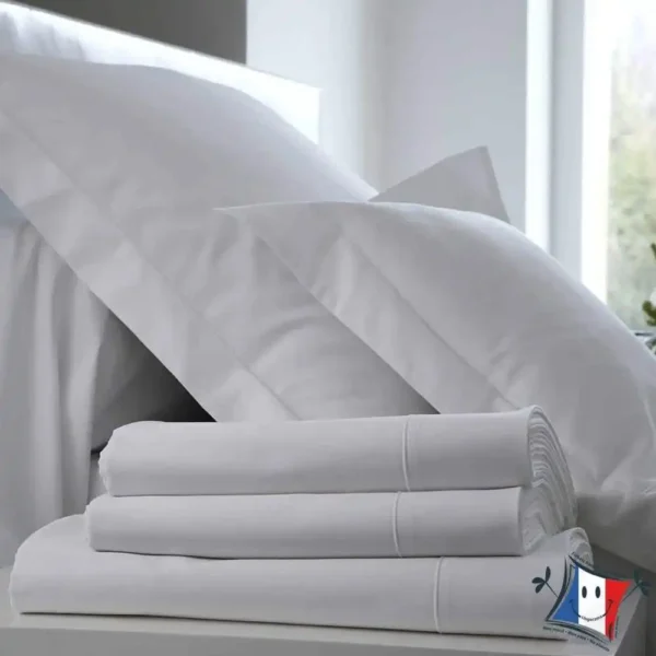 Ce drap housse est signé Blanc des Vosges et est fabriqué en France.
