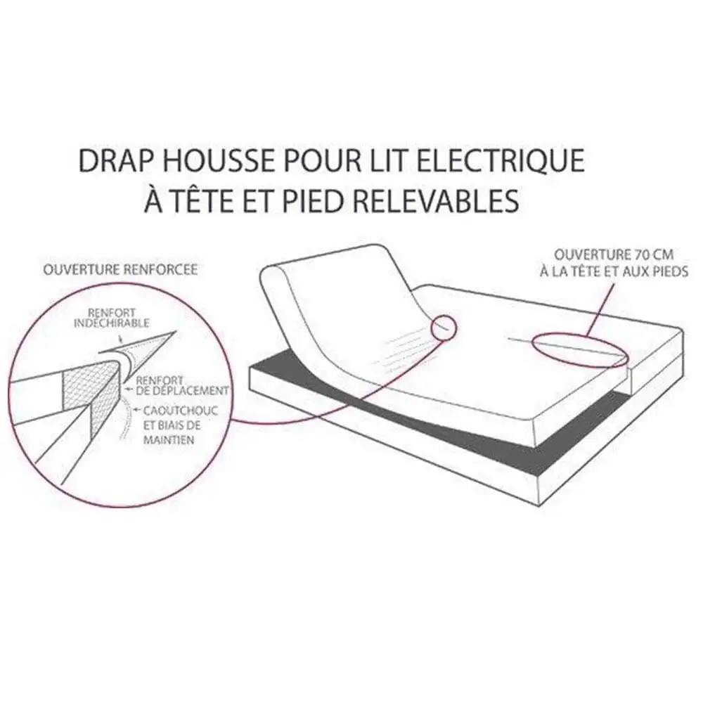 En plus de son confort, il est également très pratique pour les lits articulés 2x80x200 , avec son élasticité parfaite qui maintient le drap housse bien en place, même lorsque le lit est ajusté en position inclinée.