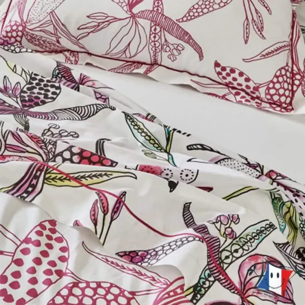 Explorez le paradis, avec notre drap plat Pénélope en pur coton 57 fils de la marque Tradilinge fabriqué en France.