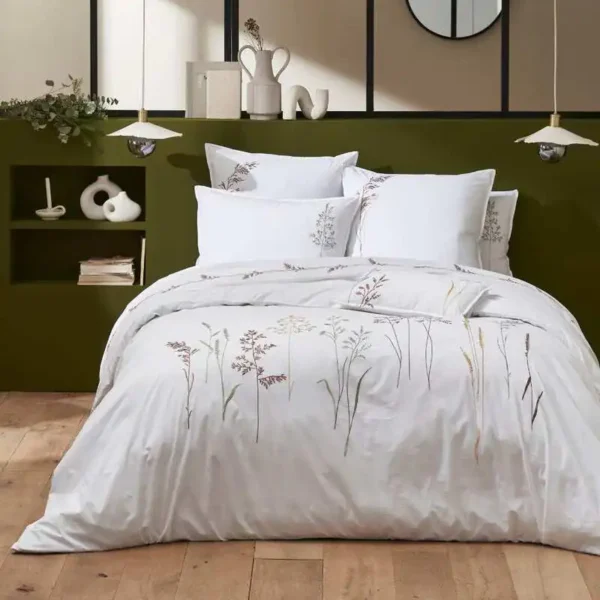 Les broderies délicates ajoutent une touche de raffinement, idéales pour sublimer la décoration de votre chambre avec subtilité. Facile à entretenir et résistante dans le temps, cette housse est le choix parfait pour celles et ceux qui recherchent une literie chic, légère et durable.