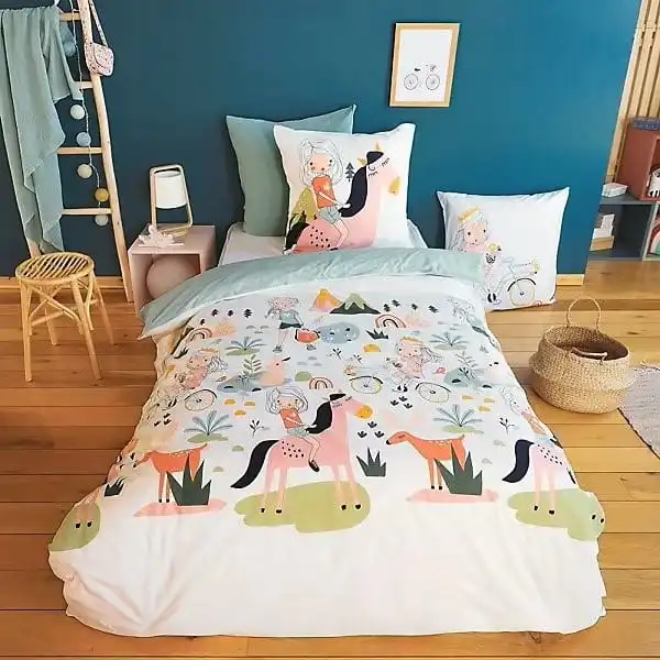 Son design enchanteur met en scène de jolis motifs illustrés aux couleurs tendres, invitant à l’évasion et aux rêves. Cette housse de couette enfant transforme le lit en véritable décor féerique, parfait pour stimuler l’imagination et créer une ambiance rassurante et joyeuse.