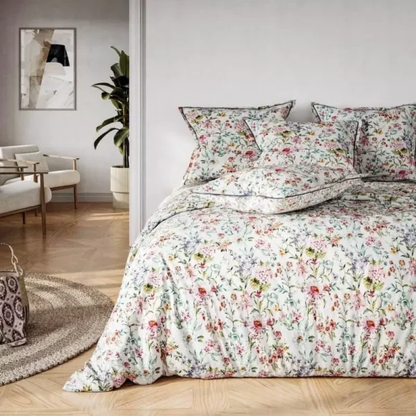 Fabriquée en coton de qualité supérieure, cette parure draps vous garantit un confort optimal grâce à sa douceur naturelle et sa matière respirante. Le tissage 57 fils assure une excellente durabilité, tout en procurant une sensation agréable au toucher. Facile d’entretien, elle conserve l’éclat de ses motifs floraux et sa blancheur lavage après lavage, vous assurant un linge de lit toujours impeccable.
