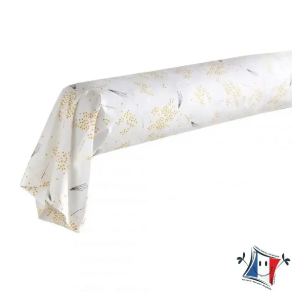 De la marque Blanc des Vosges et de fabrication française, ses motifs de fleurs de couleur jaune chatoyant ou coloris lin accompagnées de pois gris, illuminera votre espace et vous amènera dans un univers ensoleillé et chic.