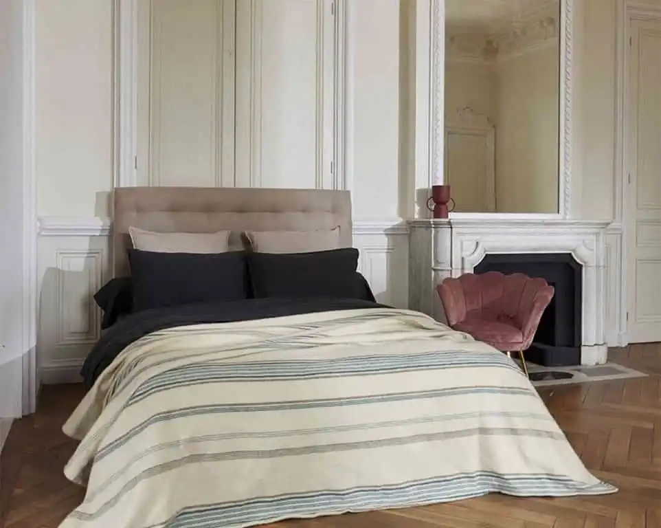Grâce à la qualité de sa laine, elle assure une chaleur douce et respirante tout en restant légère et agréable au toucher. Disponible en 220×240 cm et 240×260 cm, cette couverture combine confort, raffinement et savoir-faire durable pour un sommeil paisible et cocooning.